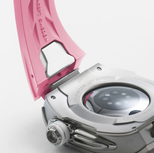 Racing Sport Moissanite Miami Ice Edition, разработанные для Аpple Watch, воплощает в себе динамичный дух Майами и создана для тех, кто ищет часы, которые выделяются.