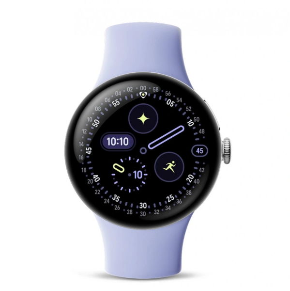 Google Pixel Watch 4 Wi-Fi, серебристый корпус 41 mm, спортивный ремешок лилового цвета (Iris)