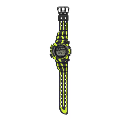 Эта модель Frogman отдает дань уважения трехполосой ядовитой древесной лягушке, обитающей в тропических лесах Южной Америки. Выносливость и яркая предупреждающая окраска лягушки подчеркнуты смелым желто-черным дизайном. Яркие вертикальные полосы флуоресцентно-зеленого цвета выделяются на черном фоне, создавая эффектный, брутальный вид, демонстрирующий интенсивность лягушки. Браслет и безель покрыты напылением, имитирующим текстуру кожи лягушки. И, конечно же, на задней крышке выгравирован культовый образ ныряющей лягушки, который присутствует на каждых часах Frogman.