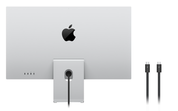 Монитор Studio Display оснащен двумя портами Thunderbolt 5. Один позволяет подключать и заряжать ноутбук Mac, а второй — высокоскоростные аксессуары или последовательно подключать дополнительные дисплеи. Два порта USB-C позволяют подключать внешние накопители или заряжать iPhone.