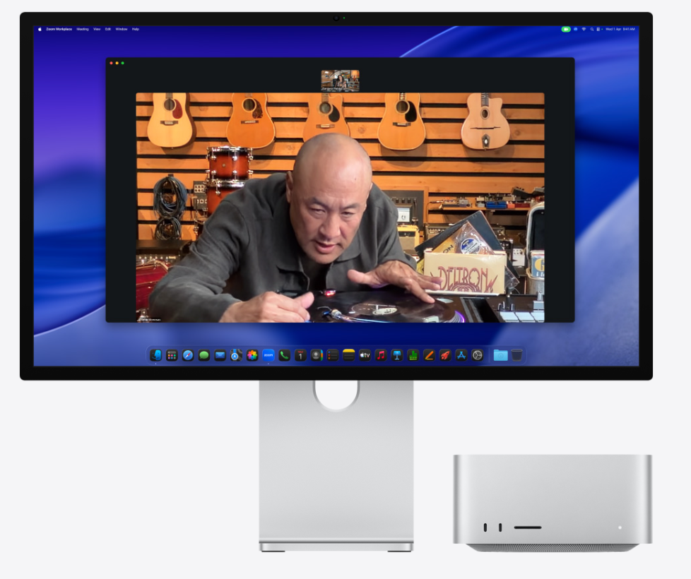 Монитор Studio Display XDR оснащен 12-мегапиксельной центральной камерой, обеспечивающей впечатляющее качество изображения и работу в условиях низкой освещенности. Оставайтесь в кадре во время видеозвонков, даже если вы перемещаетесь или к вам присоединяются другие пользователи. Функция Desk View отображает вид сверху на ваше рабочее место, не отрывая вас от экрана. А функция Edge Light подсвечивает ваше лицо, создавая виртуальное кольцо света по краям дисплея.