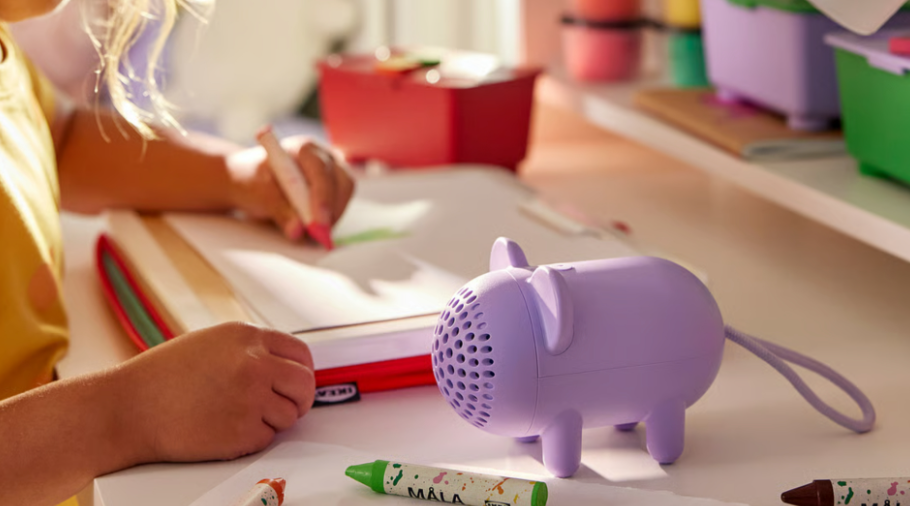 Шведский бренд IKEA выпустил колонку GREJSIMOJS с динамиком мощностью 2 Вт и поддержкой Bluetooth. Главной фишкой новинки стали уникальные форма и цвет — это сиреневое устройство небольшого размера с «ушками», «лапками» и «хвостиком», который служит для удобной переноски.