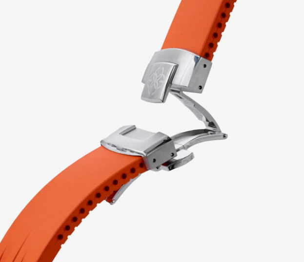 Ремешок изготовлен из полупрозрачного силикона высокой прочности, обеспечивающего комфорт и утонченность. Коллекция корпусов Racing Sport оснащена застёжкой "Бабочка", которая обеспечивает комфорт на запястье, легко открывается и имеет лаконичный дизайн. Легко надевается и снимается, что идеально подходит для активного и практичного использования.