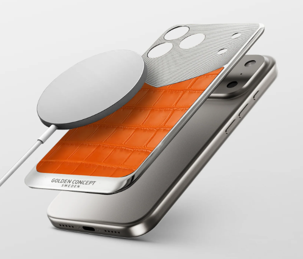 Чехол Orange Alligator Edition, созданный для iPhone 17 Pro, Pro Мах и iPhone 17 Air, сочетает в себе яркую матовую оранжевую кожу миссисипского аллигатора с серебристой задней панелью из нержавеющей стали. Сочетание яркого цвета и гравированных стальных деталей придаёт iPhone динамичный и современный вид.