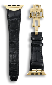 • Ремешок Golden Concept для Apple Watch, Alligator Leather (Black/Desert Gold)