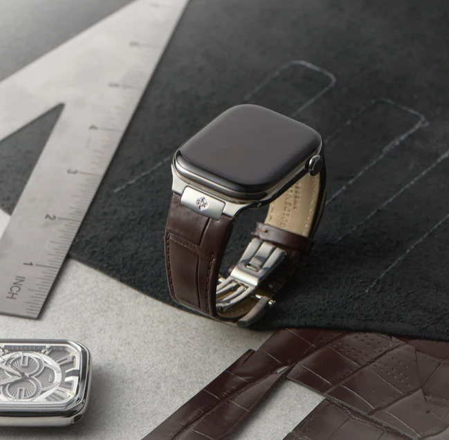 Ремешок разработан для идеальной совместимости с моделями Аpple Watch 44 мм, 45 мм, 46 мм и 49 мм. Благодаря простой и надежной защелке он легко крепится, позволяя вам без труда подчеркнуть красоту ваших часов - никаких инструментов, только роскошь.