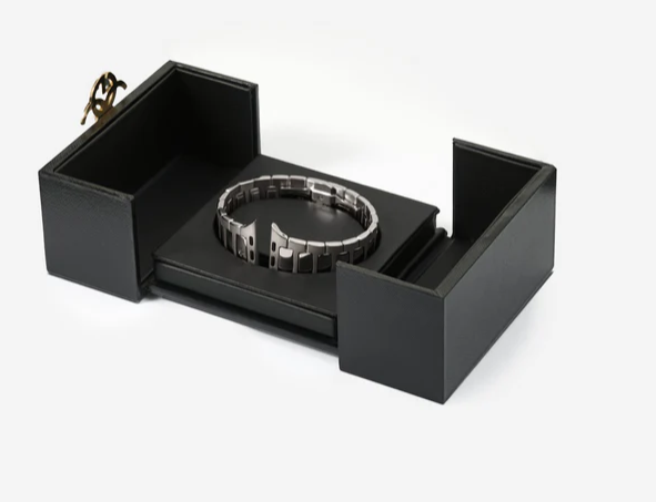 Каждый ремешок для Apple Watch поставляется в коробке, столь же исключительной, как и его содержимое. Изготовленная вручную с особой тщательностью, она имеет элегантную внутреннюю отделку из черной кожи. Эта коробка не просто упаковка; это свидетельство нашей приверженности к совершенству, превращающее сам процесс презентации ремешка для Аpple Watch в незабываемое событие.