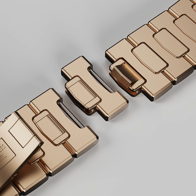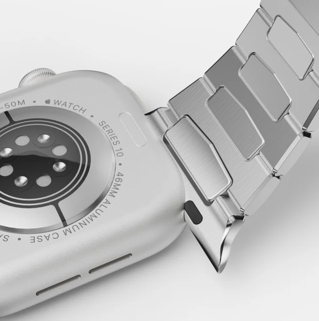 • Новое поколение ремешка Royal для Apple Watch c революционной системой регулировки размера. Вместо удаления штифтов и звеньев, эта обновленная модель позволяет легко защелкивать и снимать звенья, обеспечивая быструю и индивидуальную подгонку.