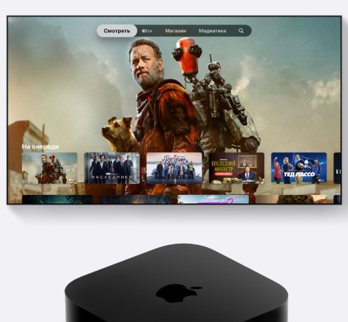 Apple TV 4K — это устройство от компании Apple, которое предоставляет вам доступ к тысячам фильмов, телешоу, игр и приложений с высоким разрешением 4K HDR. Просто подключите его к своему телевизору и не забудьте про попкорн.