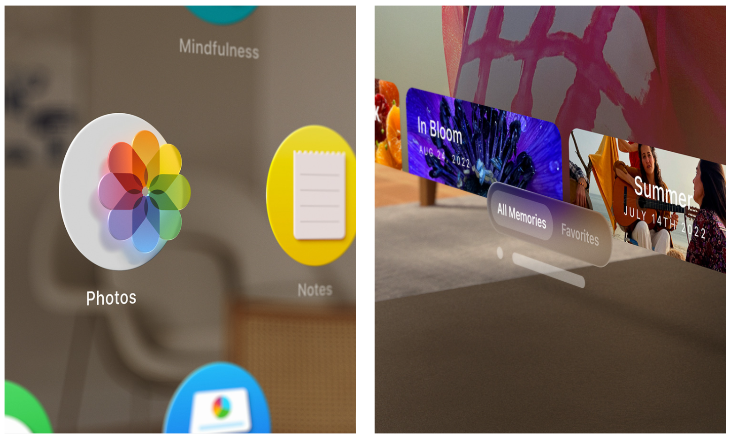 Vision Pro — первая 3D-камера Apple. Вы можете снимать волшебные пространственные фотографии и пространственные видеоролики в формате 3D, а затем заново переживать эти заветные моменты, как никогда раньше, с иммерсивным пространственным звуком. Ваша существующая библиотека фотографий и видео выглядит невероятно в таком масштабе. И панорамы обвивают, заставляя чувствовать, что вы стоите именно там, где вы их сняли.