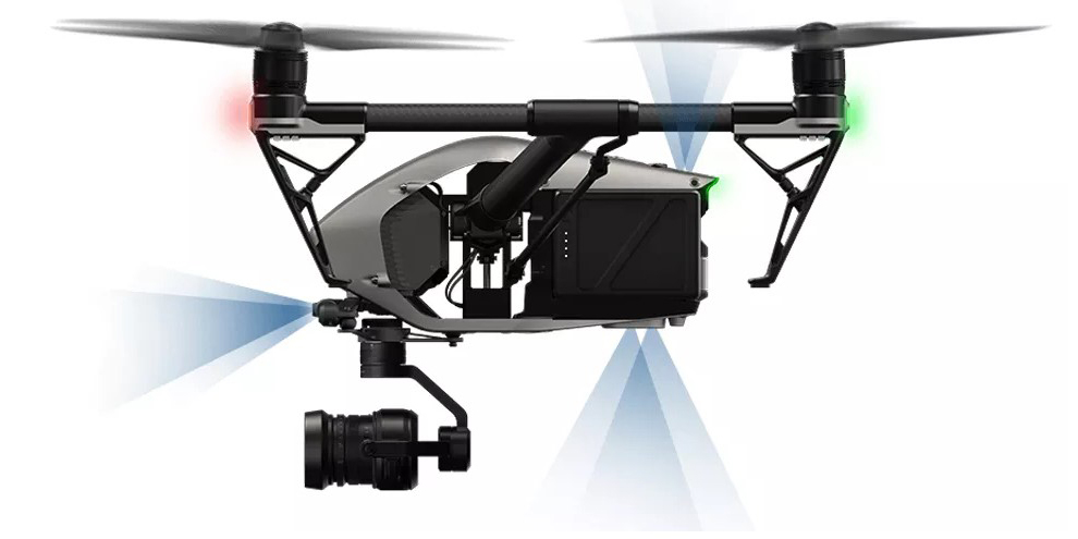 DJI добавила вторую камеру в переднюю часть Inspire 2. Благодаря этому пилот дрона сможет всегда смотреть вперёд, в то время как оператор камеры сосредоточится на управлении камерой.