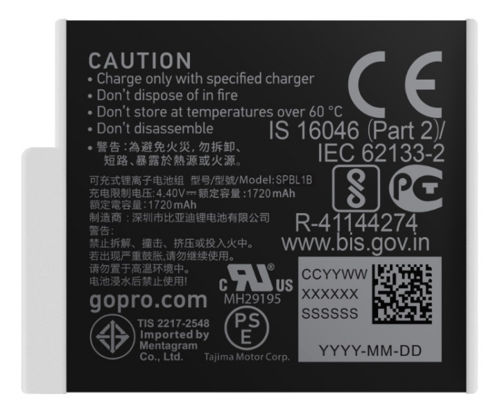 - Зарядка до 13 % быстрее по сравнению со стандартным аккумулятором GoPro