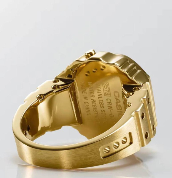 Продолжая празднование 50-летия компании, Casio представила «золотую» версию Ring Watch CRW-001G-9JR. Для создания миниатюрного аксессуара из нержавеющей стали с золотым напылением вновь использовалась технология литья металлов под давлением (MIM), благодаря чему корпус, задняя крышка и непосредственно кольцо составляют одно целое.