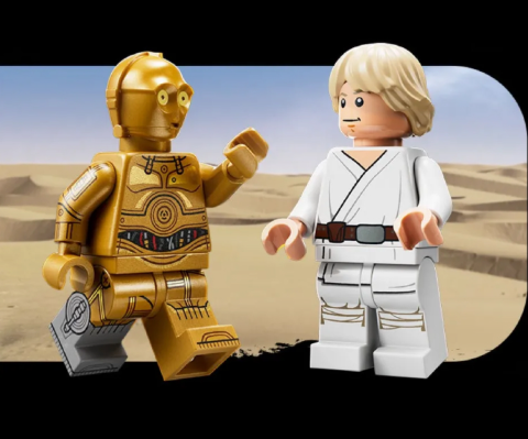 В набор входят минифигурка Люка Скайуокера и минифигурка C-3PO