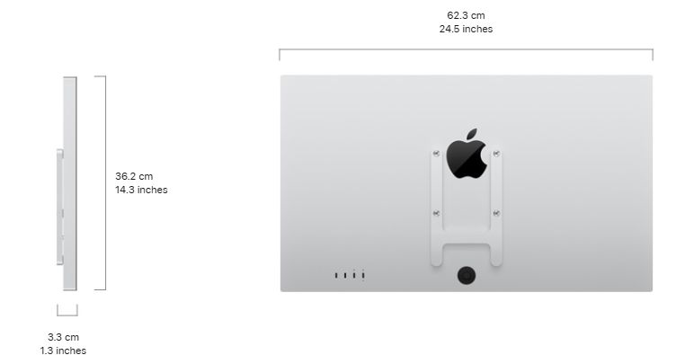 - Studio Display XDR с адаптером крепления VESA: 36,2 х 62,3 х 3,3 см
