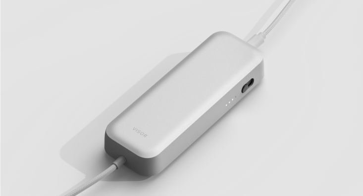 Созданный для комфорта в течение всего дня, Visor удобен в использовании и функционален. Времена больших громоздких гарнитур прошли. Расширенная батарея крепится с помощью провода, который проходит в карман пользователя. Он имеет модуль Wi-Fi, который позволяет пользователю иметь беспроводное соединение со своим компьютером для беспроводного использования. Этот аккумуляторный блок также имеет порт USB-C на другом конце, который можно подключить к компьютеру для проводного подключения (более высокое разрешение, меньшая задержка), а также пассивно заряжать аккумулятор. Как только пользователь отключится, чтобы снова подключиться к беспроводной сети, он легко подключит их через Wi-Fi.
