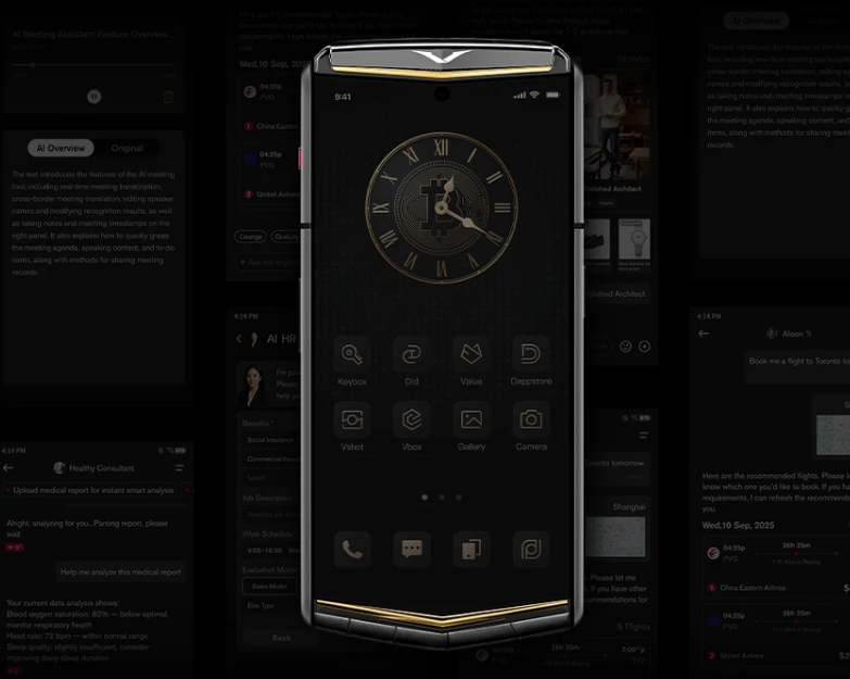 AIGS (AI Generated Service) — глобальная сеть, в которой искусственный и человеческий интеллект взаимодействуют как единое целое. Благодаря Agent API Framework такие партнёры, как частные банки, юридические фирмы и авиакомпании, могут напрямую интегрироваться в VAOS, подключая свои сервисы к безопасной экосистеме VERTU всего несколькими строками кода.