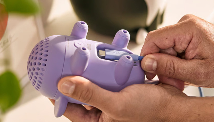 Шведский бренд IKEA выпустил колонку GREJSIMOJS с динамиком мощностью 2 Вт и поддержкой Bluetooth. Главной фишкой новинки стали уникальные форма и цвет — это сиреневое устройство небольшого размера с «ушками», «лапками» и «хвостиком», который служит для удобной переноски.