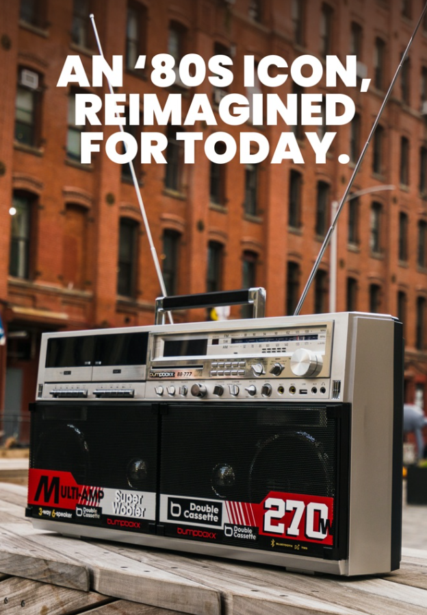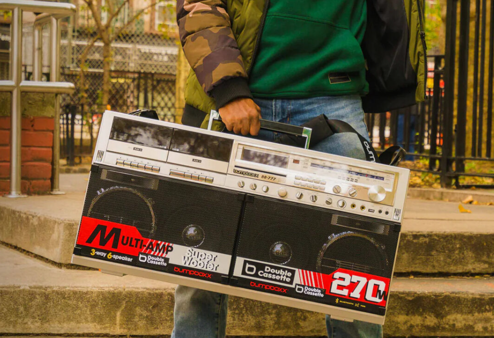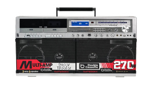 Позвольте себе полностью отдаться ностальгии по аппаратуре 80-х — у данного бумбокса в наличии двухкассетник и AM/FM-радио с коротковолновым диапазоном. А те, кто впечатляются от музыки 90-х смогут по праву оценить CD-проигрыватель.
